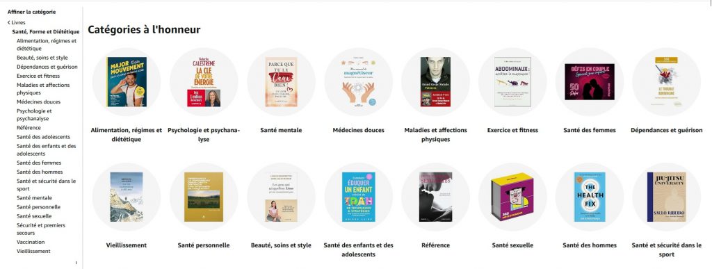 3. Parcourez les catégories : Santé, Forme, Diététique